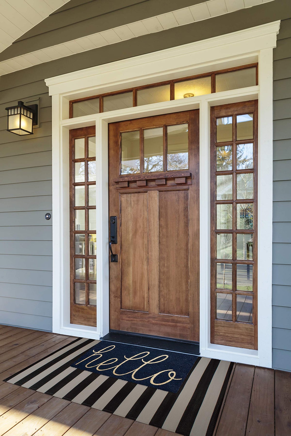 DII Hello Coir Fiber Doormat Non-Slip Durable Outdoor/Indoor, Pet Friendly, 18x30, Navy