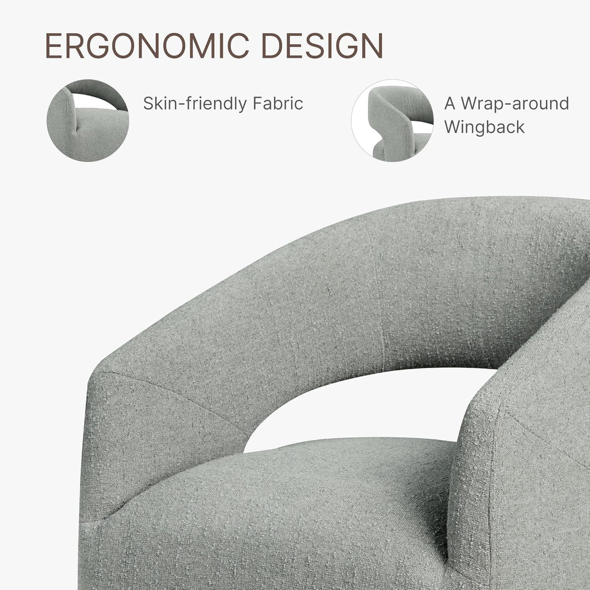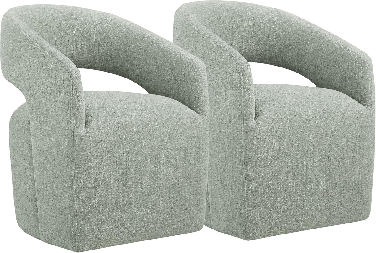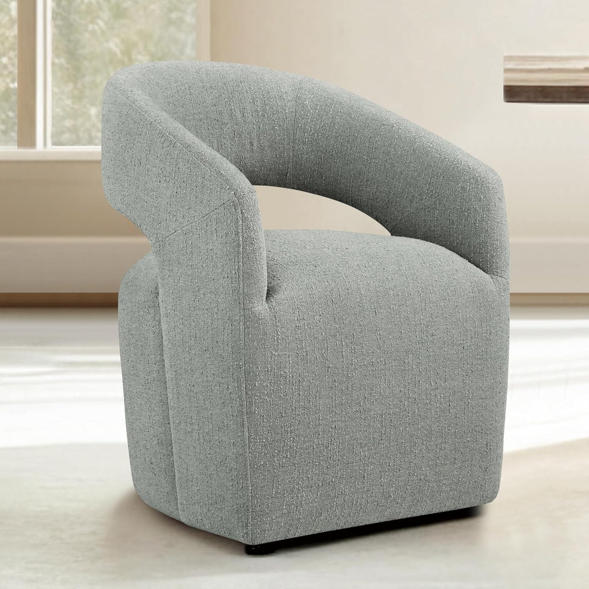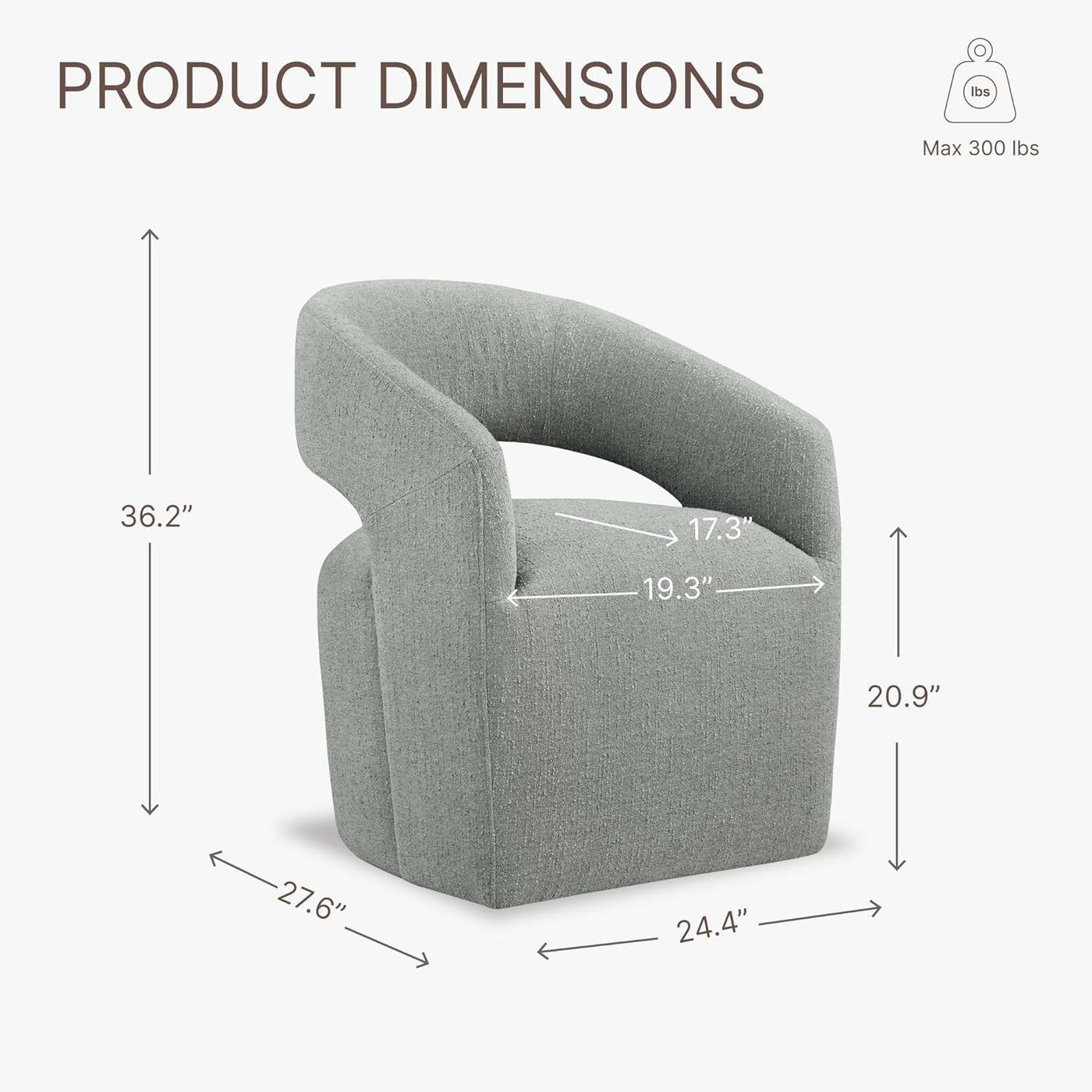 Upholstered Dining Chairs with Casters No Assembly Modern Barrel Armchair with Rollers for Dining room Bedroom Living room Reading Room, Set of 2,Fog
