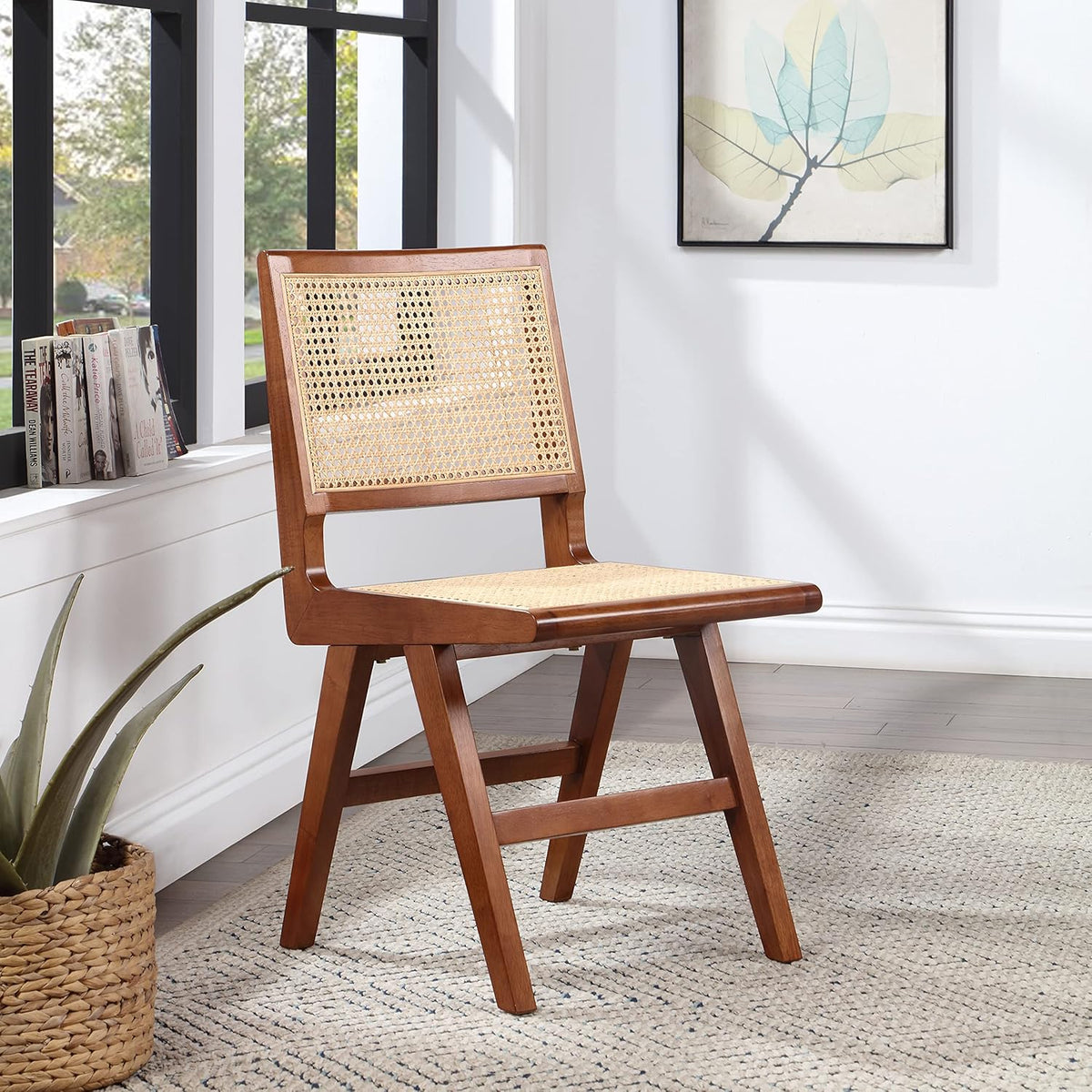 Meridian Furniture 588Walnut-SC Preston Collection Mid-Century Modern Dining Side Chair, Solid Wood Walnut Finish, Natural Cane/Rattan Back and Seat, 18.5" W x 22" D x 34.5" H, Walnut, Set of 2