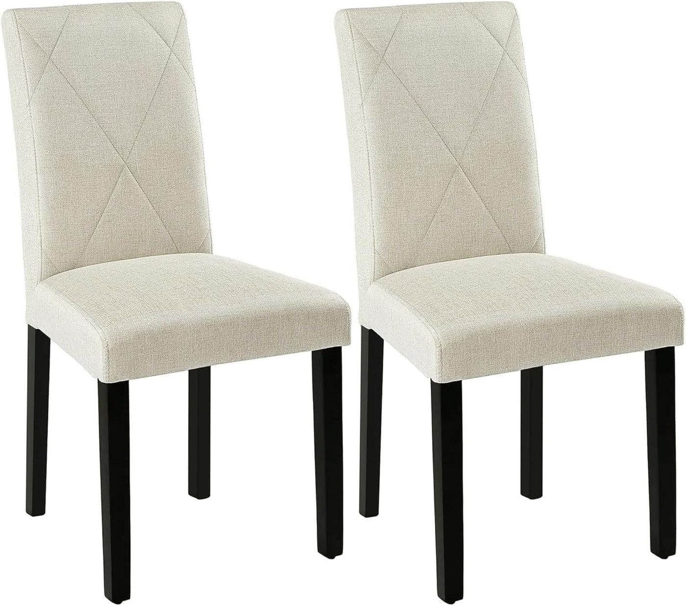 VECELO Upholstered Dining Chairs Set of 2, Modern Fabric and Solid Wood Legs & High Back for Kitchen/Living Room- Beige