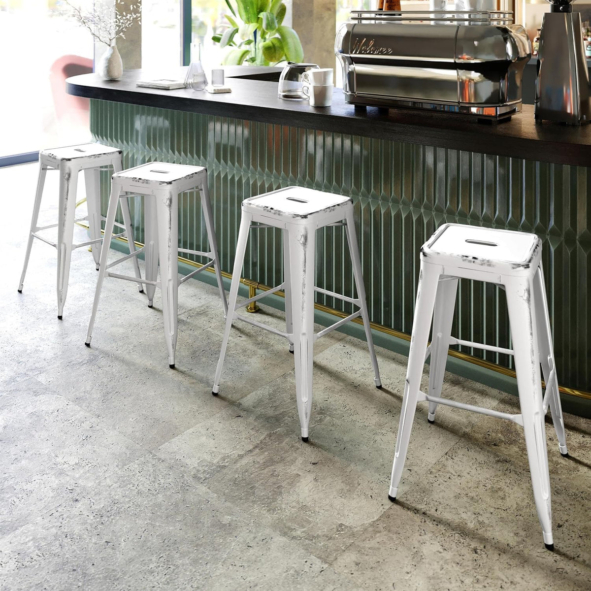 Flash Furniture Kai Commercial Grade 30" High Backless Distressed White Metal Indoor-Outdoor Barstool