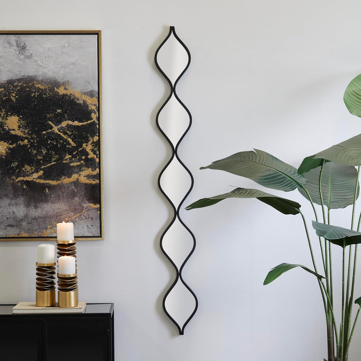 Deco 79 Metal Room Wall Mirror Slim Stacked Chain 5 Layer Entryway Mirror with Trellis Pattern, Wall Mounted Mirror 7" x 1" x 59", Black