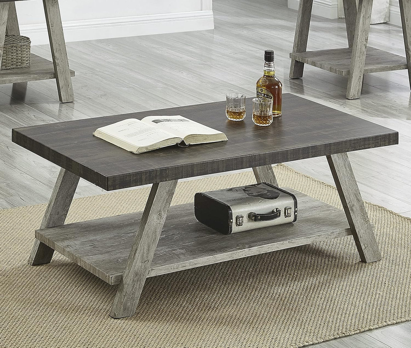 Roundhill Furniture Athens Contemporary Wood Shelf Coffee Table, Weathered Espresso
