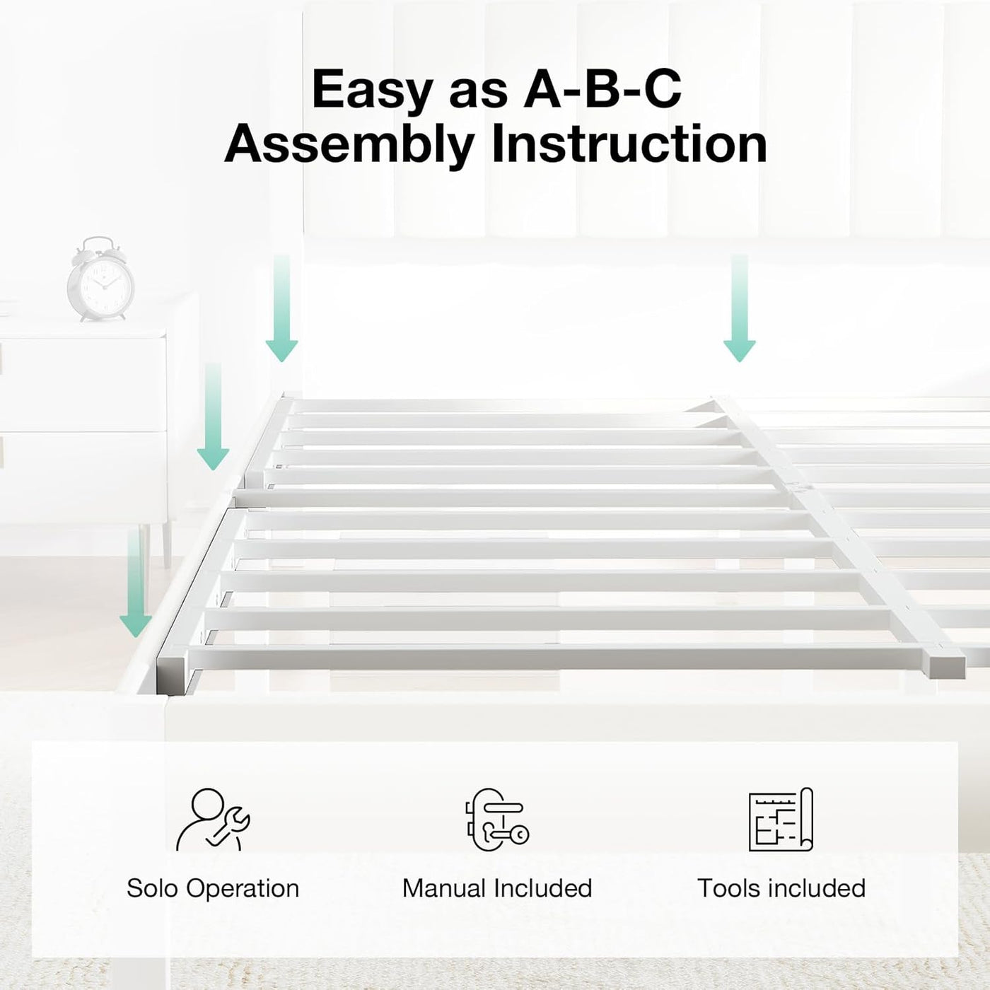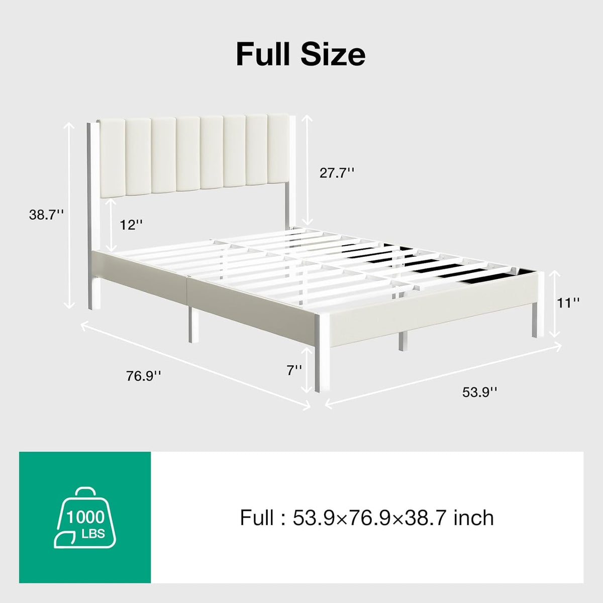 Novilla Full Bed Frame with Piano Keys Headboard and Footboard, Metal Platform Bed Frames Full Size, No Box Spring Needed, Easy Assembly, Steel Slats Support, Velvet White