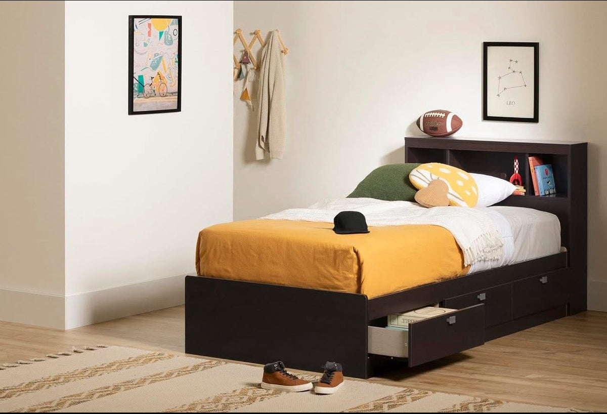 South Shore Twin Storage Bed and Bookcase Headboard, Chocolate