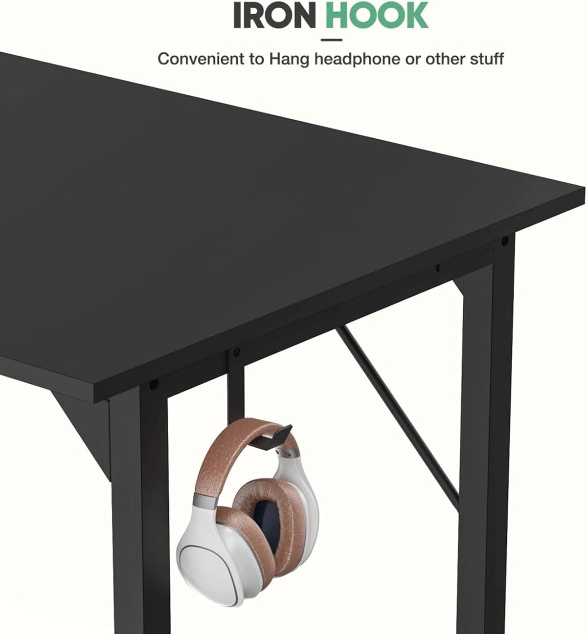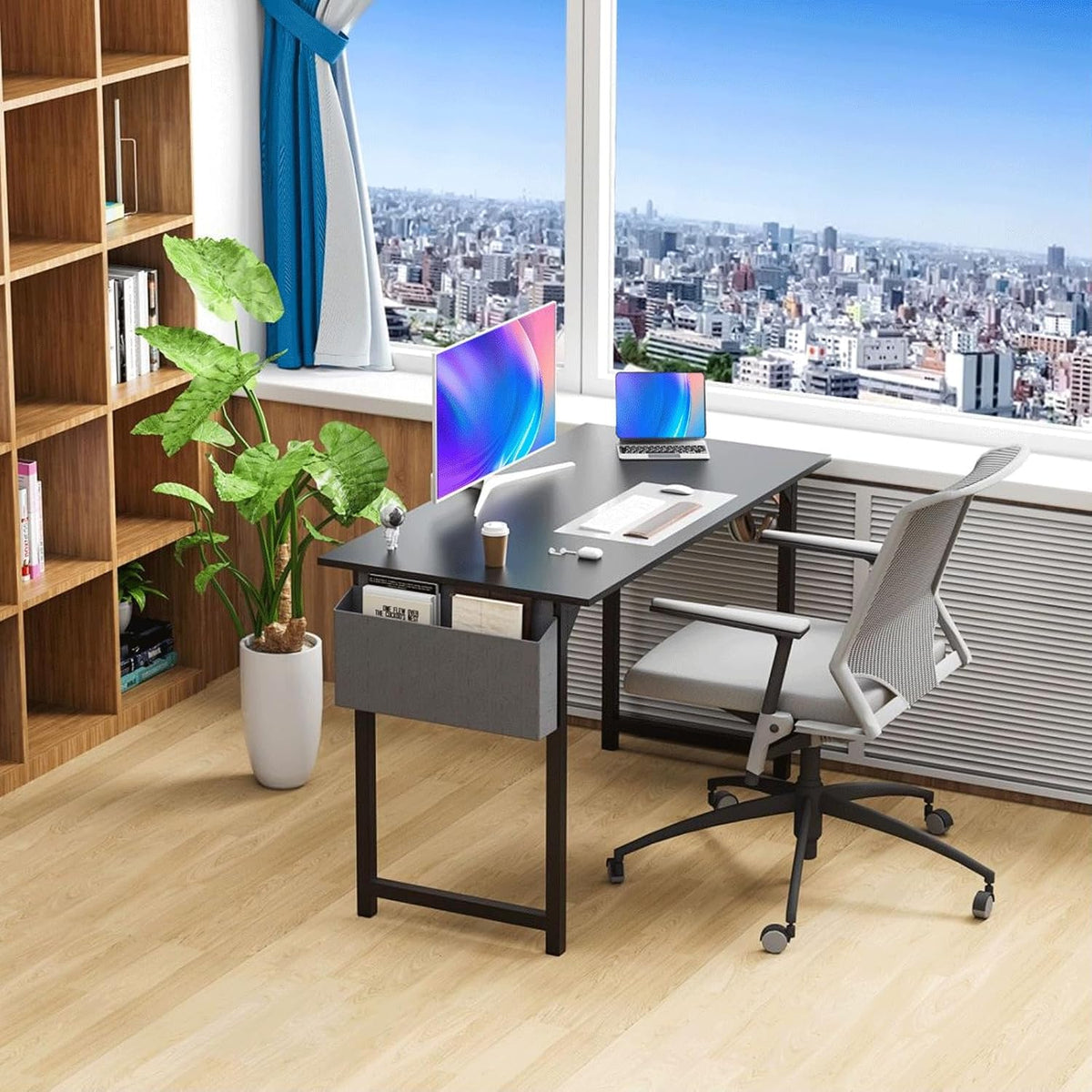 47 Inch Desk Office with Storage, Modern Simple Style Gaming Computer Table for Youth Student Adult, Metal and Wood Home Office Furniture, Black