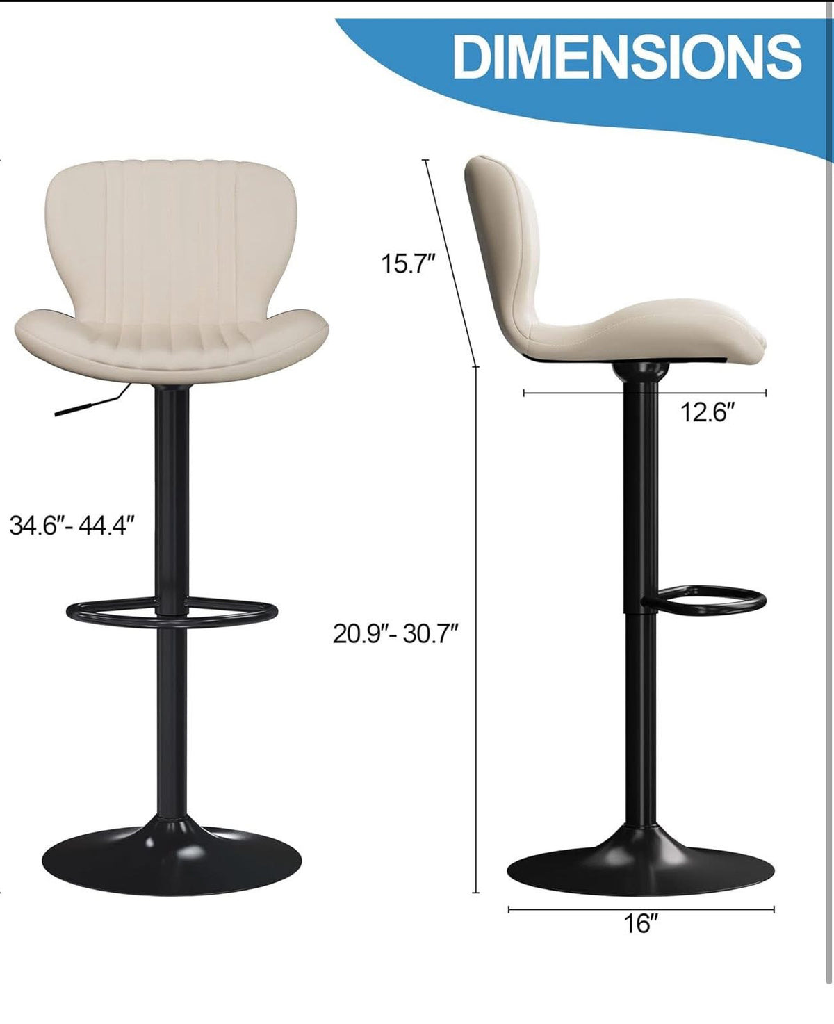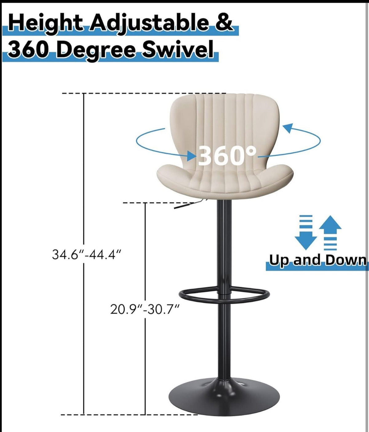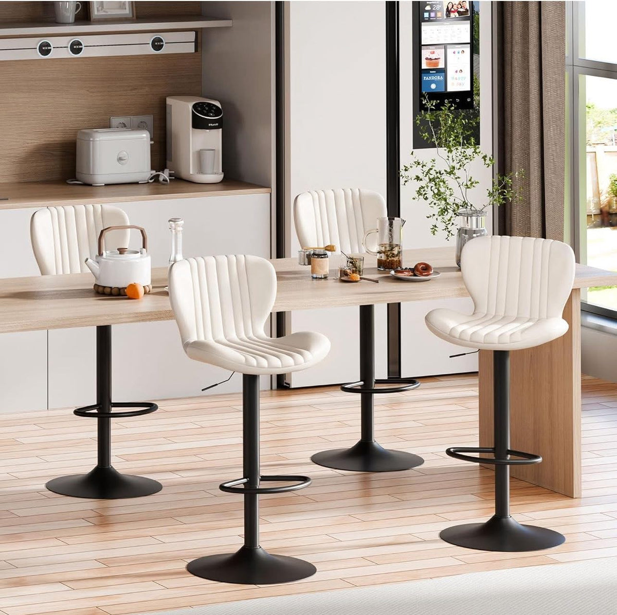 Shintenchi Bar Stools Set of 4 Modern Swivel Bar Chairs, Counter Height Faux Leather Metal Barstools, Upholstered Island Chairs with Back and Footrest, Beige